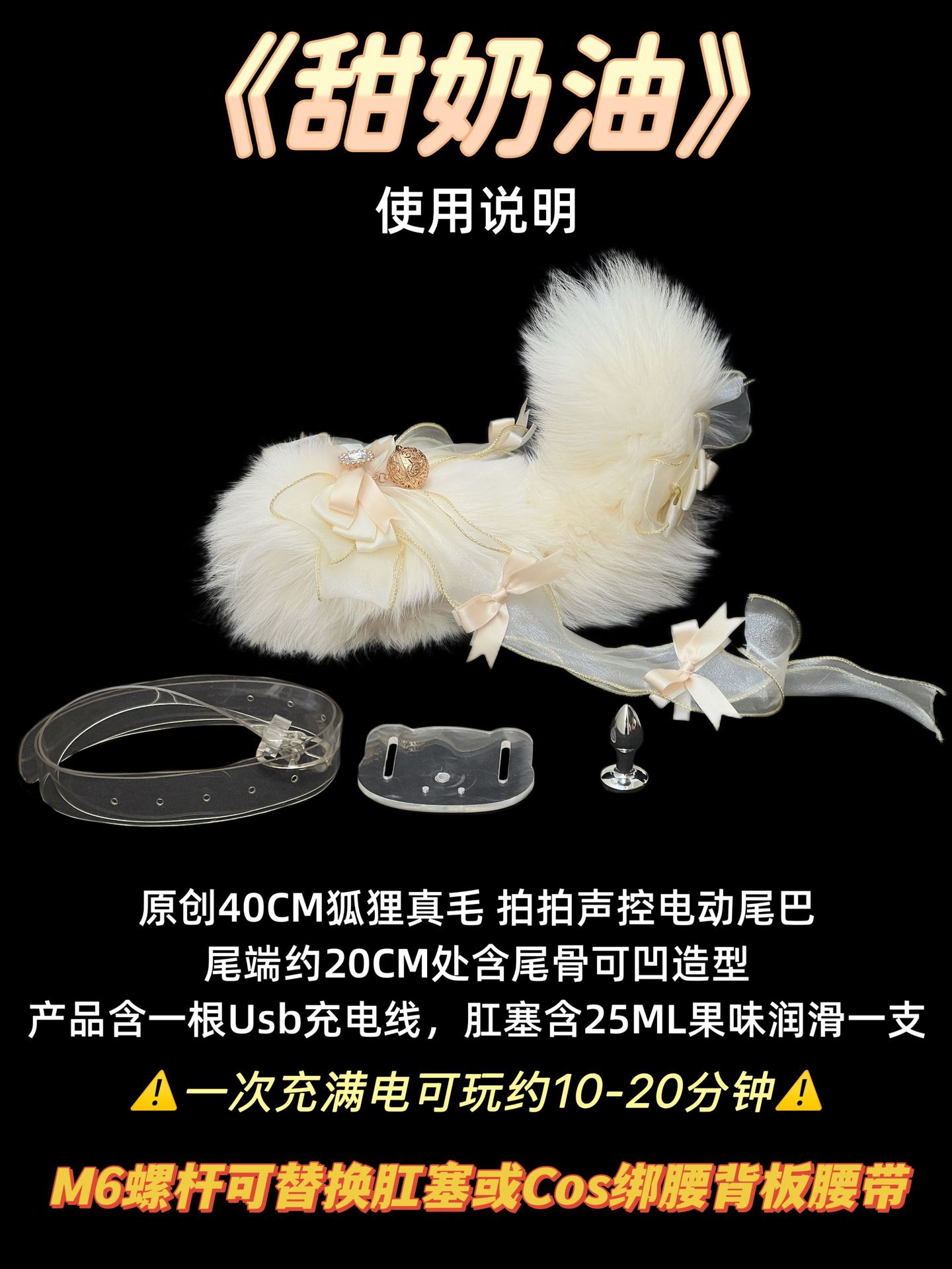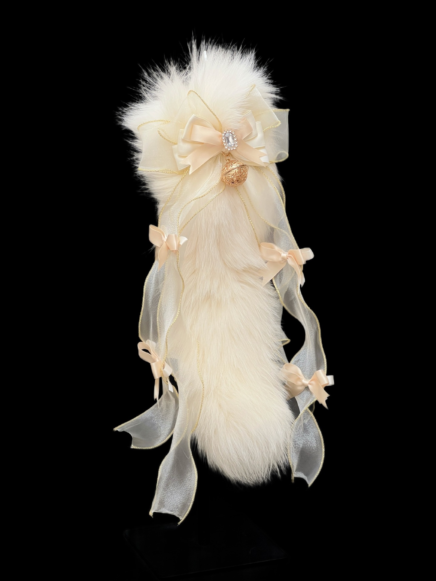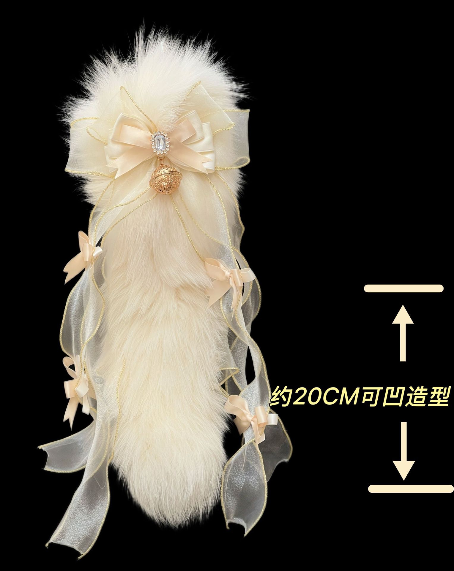 Sweet Cream Voice-Controlled Electric Tail Butt Plug with Real Fox Fur Bow & Bell