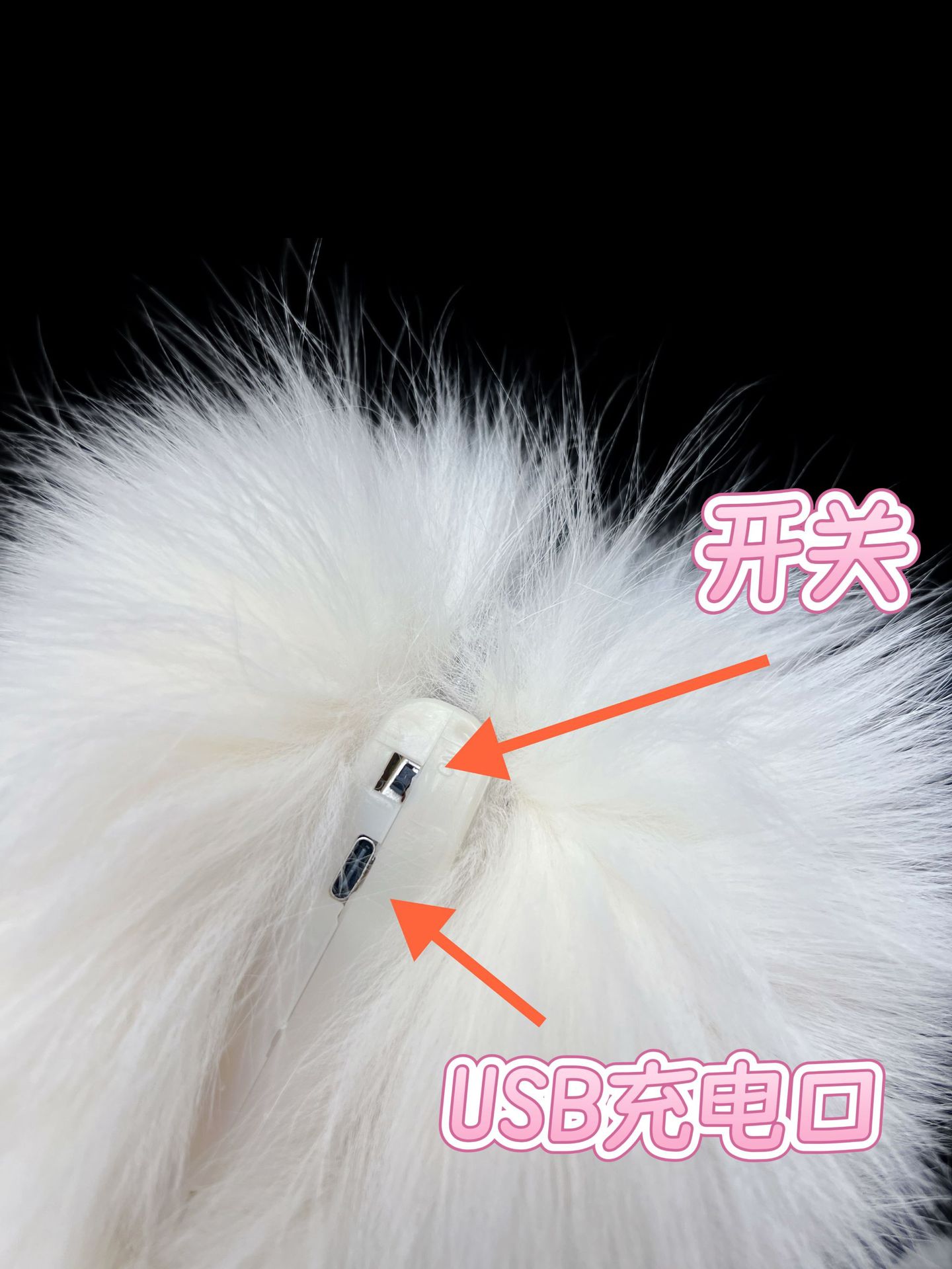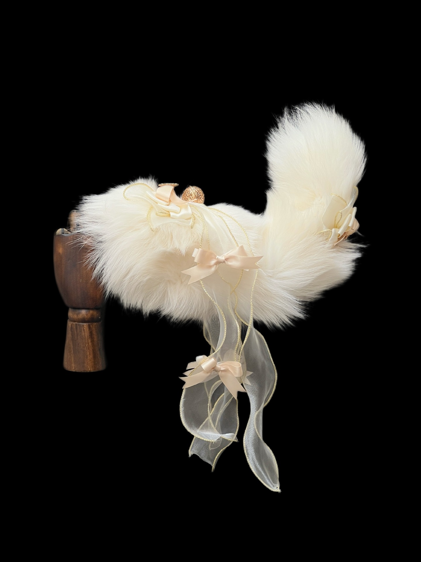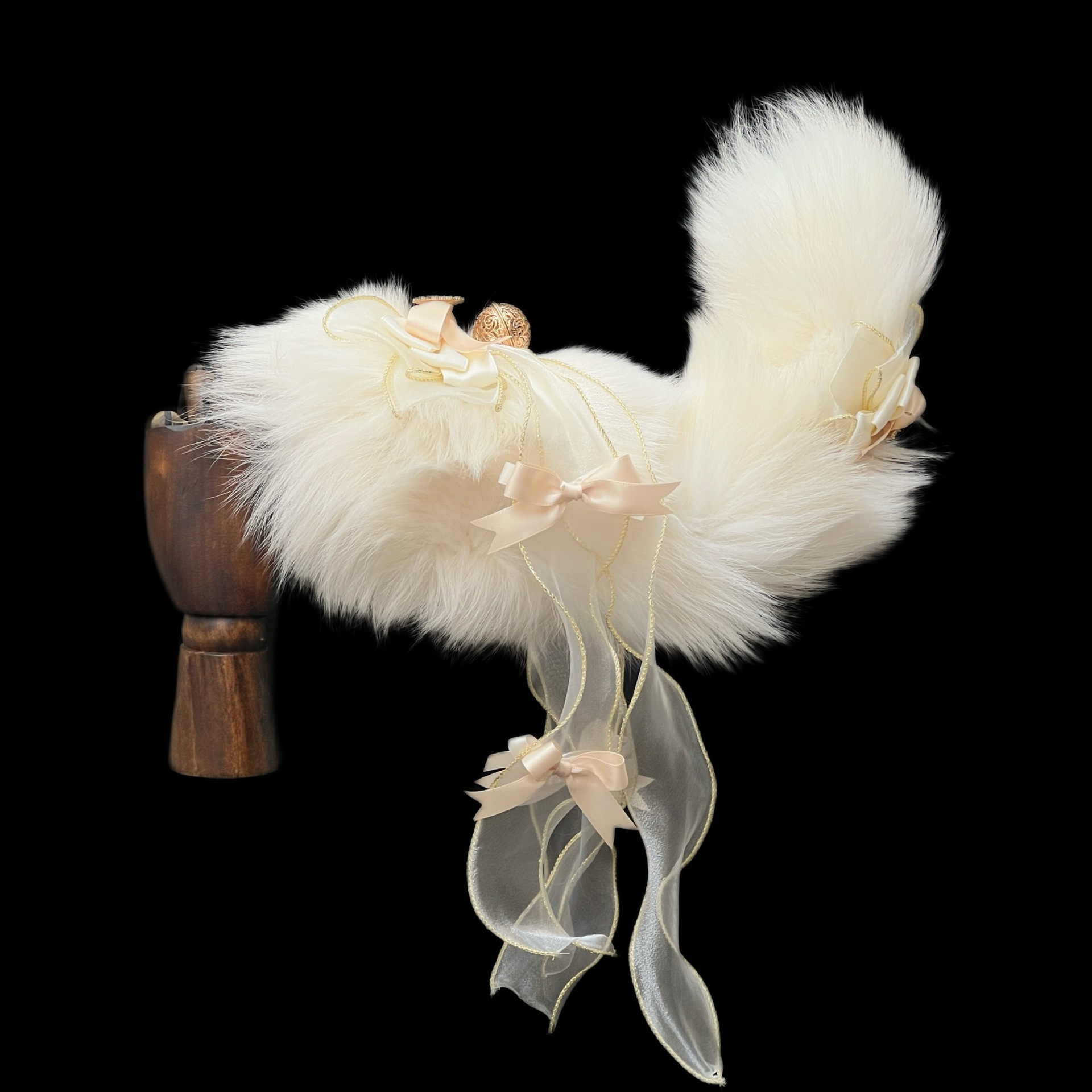 Sweet Cream Voice-Controlled Electric Tail Butt Plug with Real Fox Fur Bow & Bell