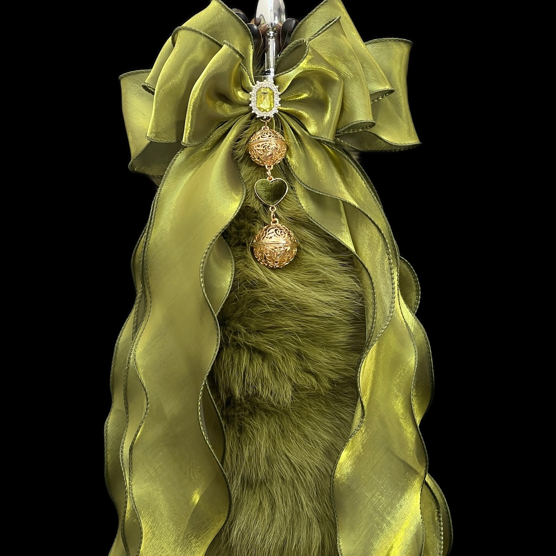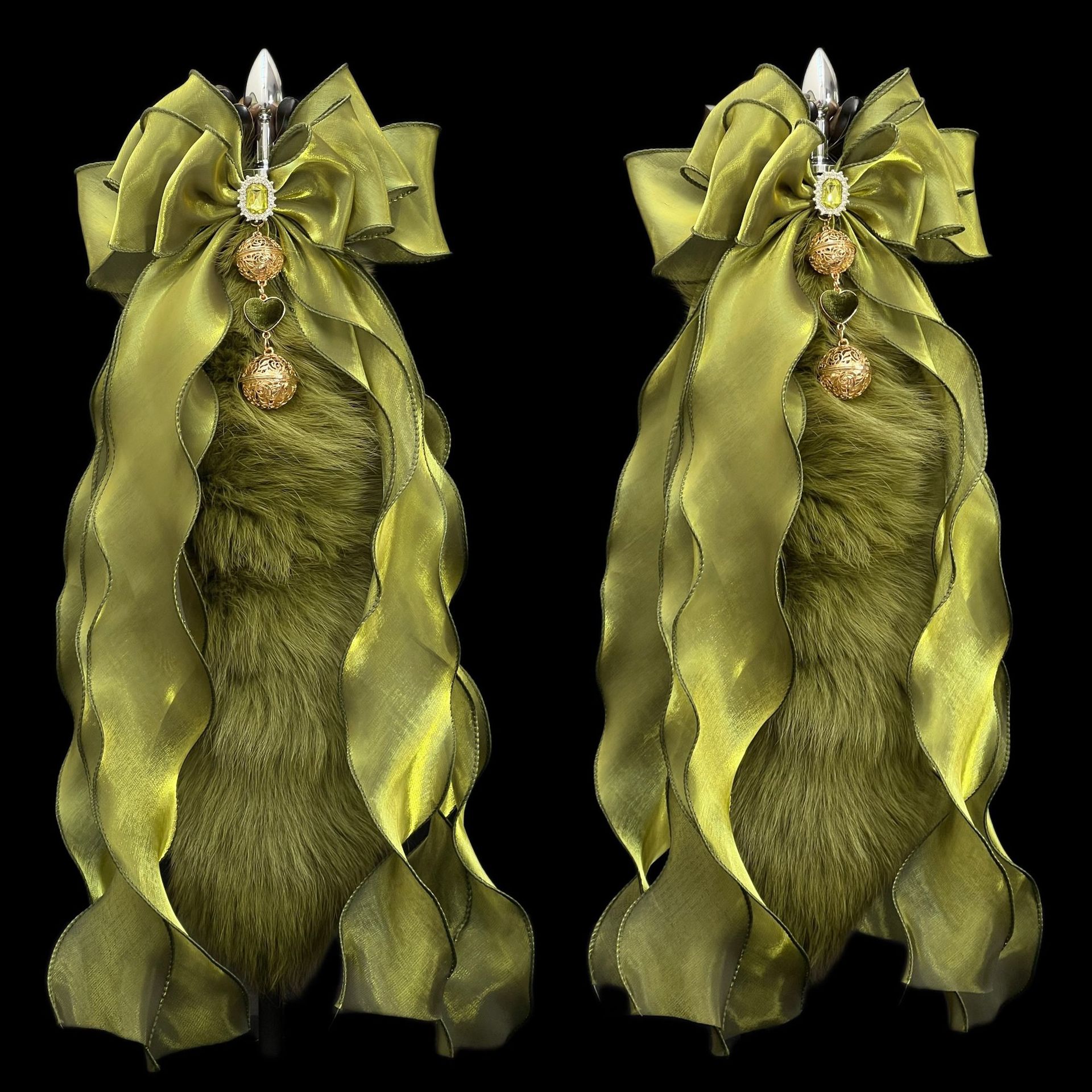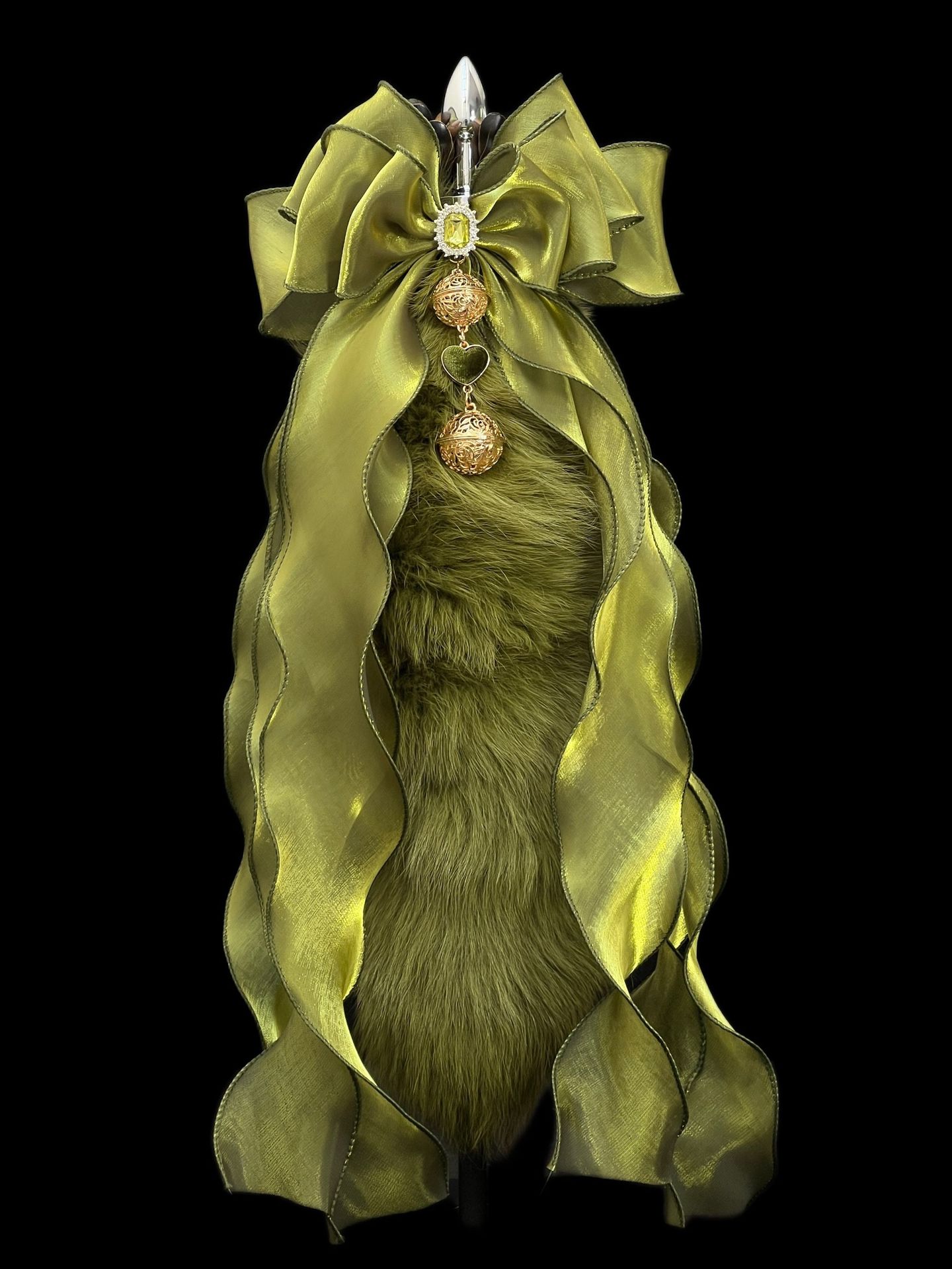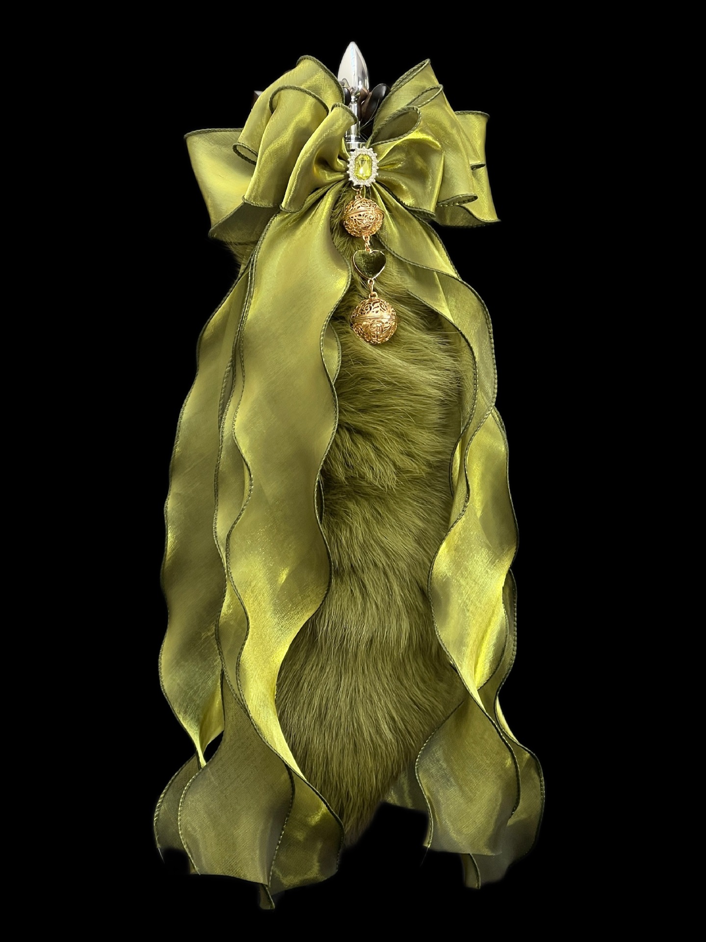 40cm Matcha Green Fox Tail Anal Plug with Removable Bow and Bell