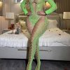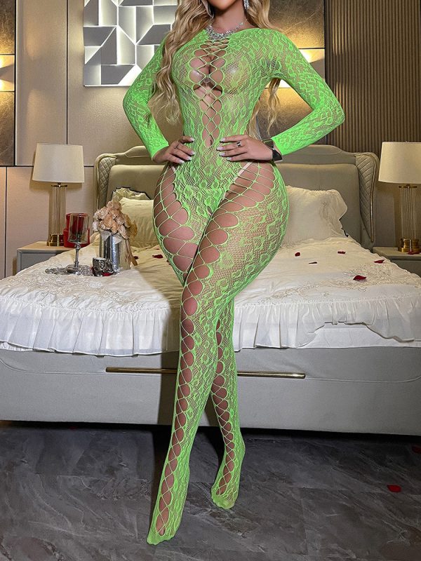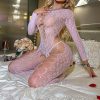 Thin cute pink sexy lingerie European and American fishnet clothes sexy fishnet pajamas long sleeve tight jumpsuit w850