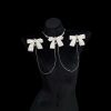 Champagne Gold Rhinestone Nipple Clamps with Chest Chain – Detachable Bow Accent