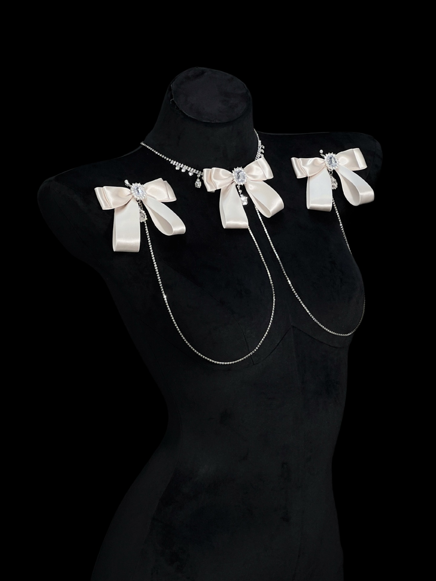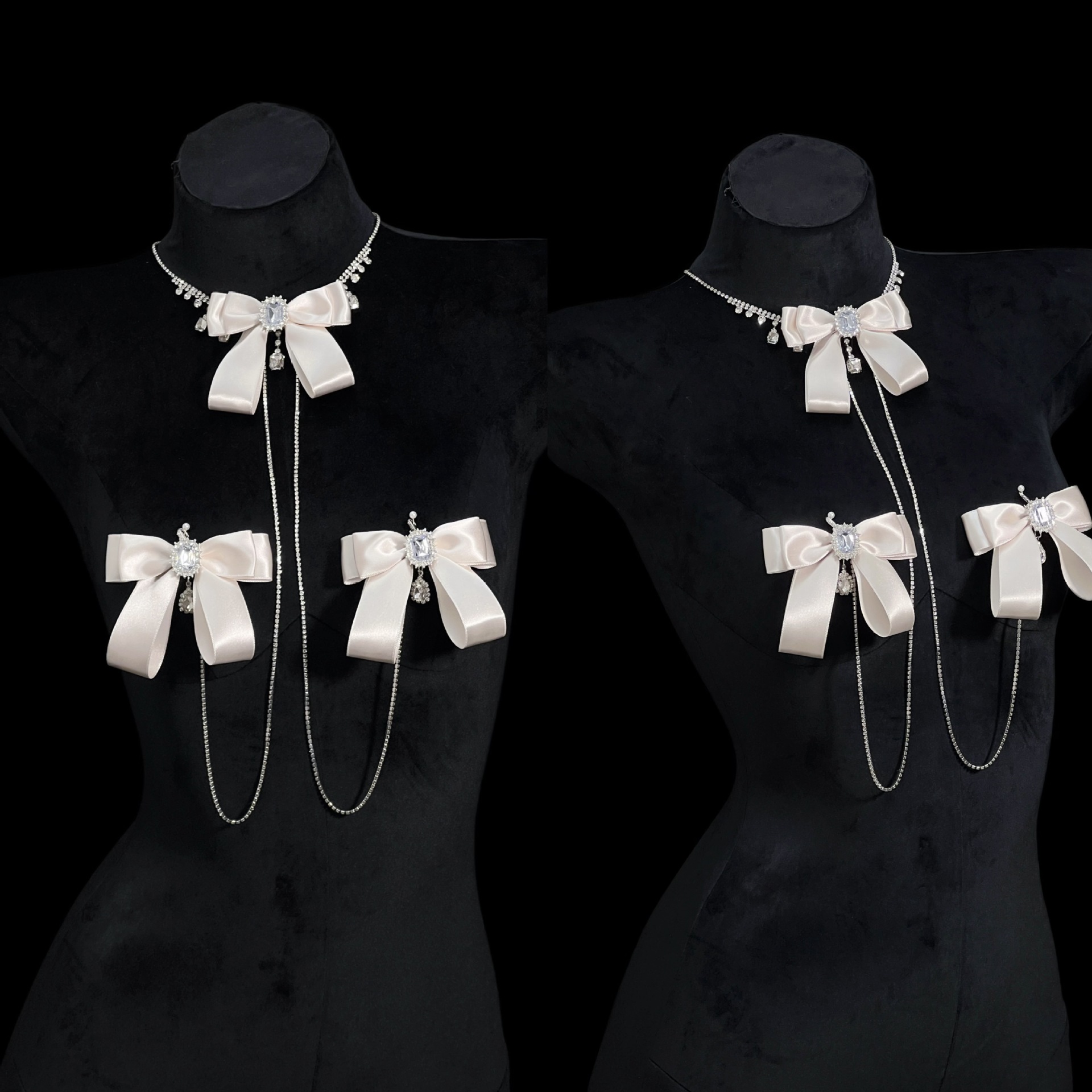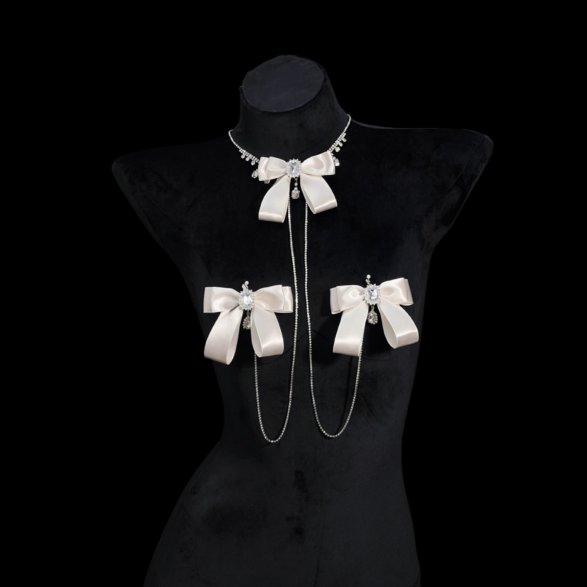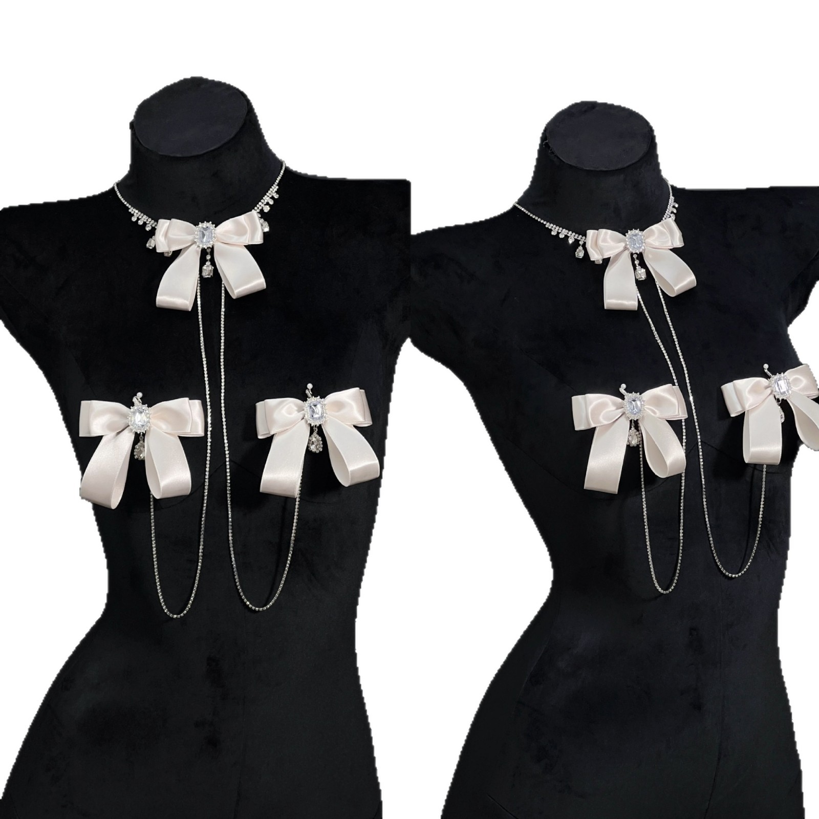 Be the first to review “Champagne Gold Rhinestone Nipple Clamps with Chest Chain – Detachable Bow Accent”