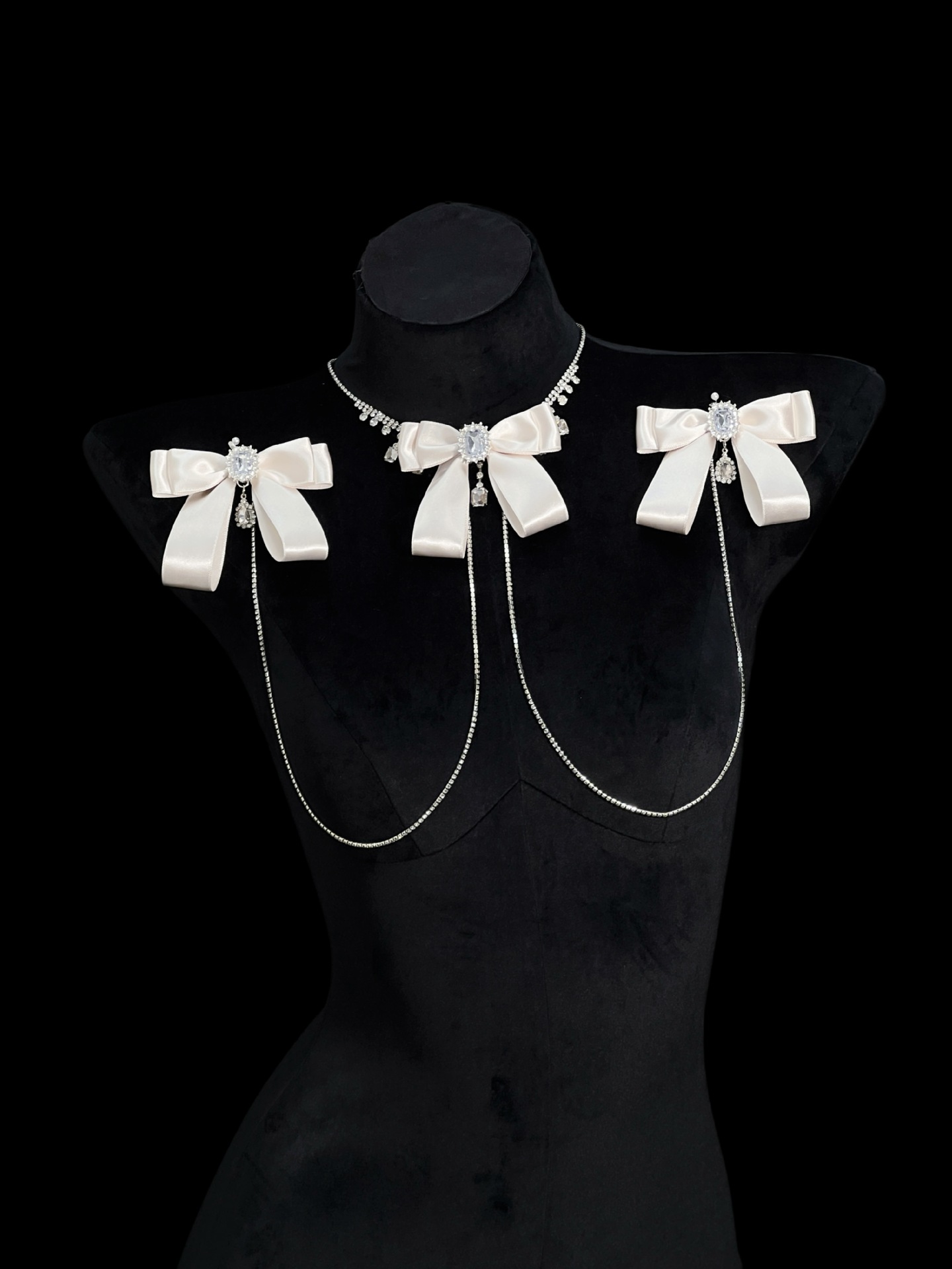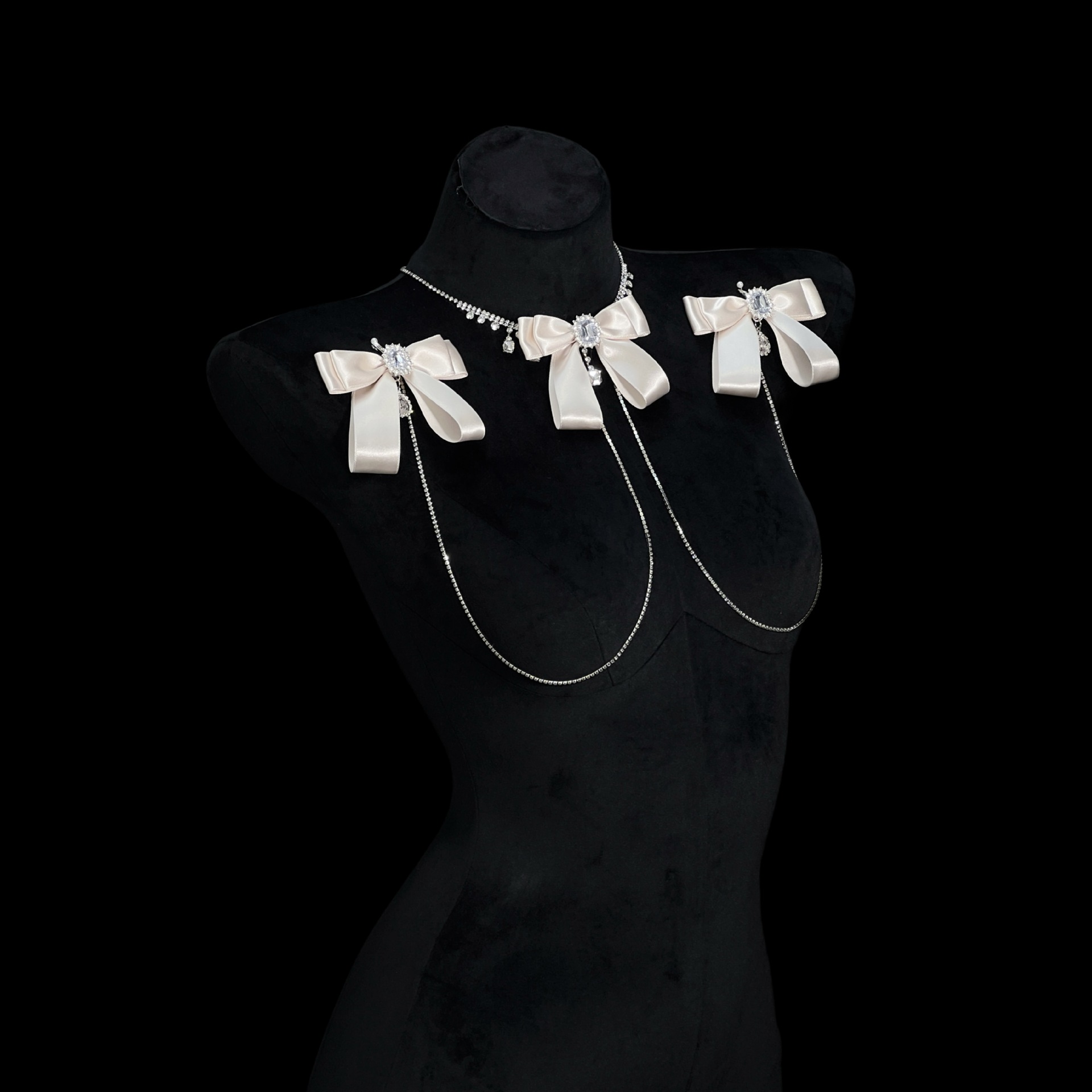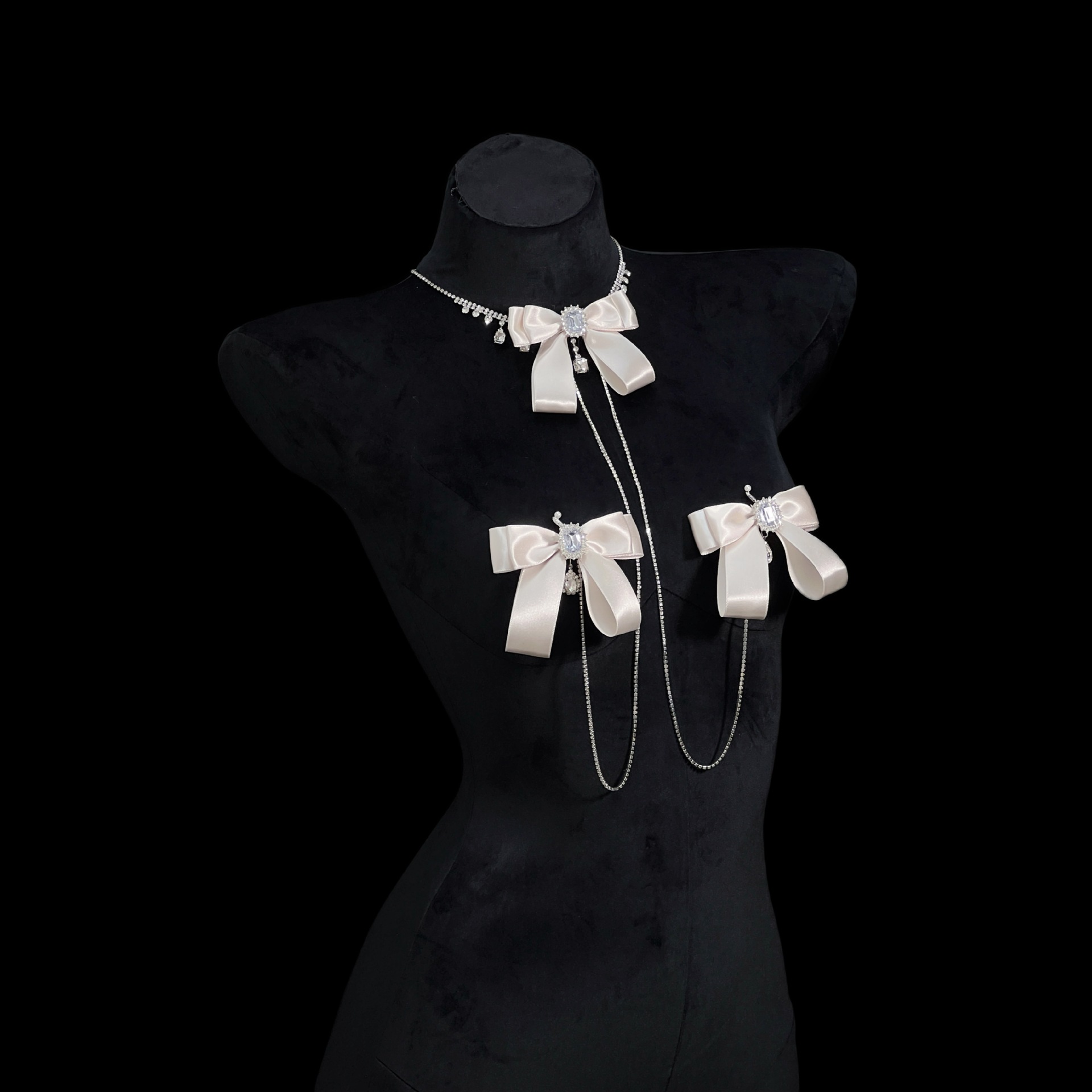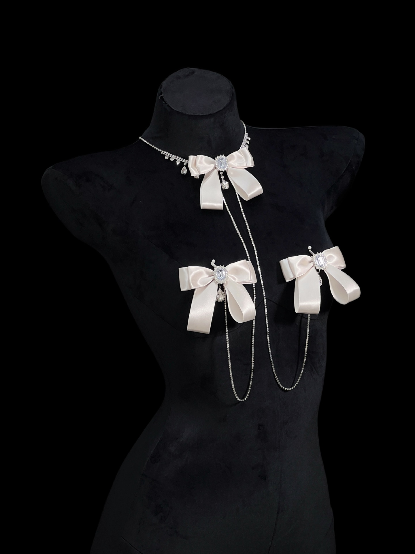 Be the first to review “Champagne Gold Rhinestone Nipple Clamps with Chest Chain – Detachable Bow Accent”