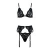 Ultra-thin lace hollow-waist mesh see-through lingerie set