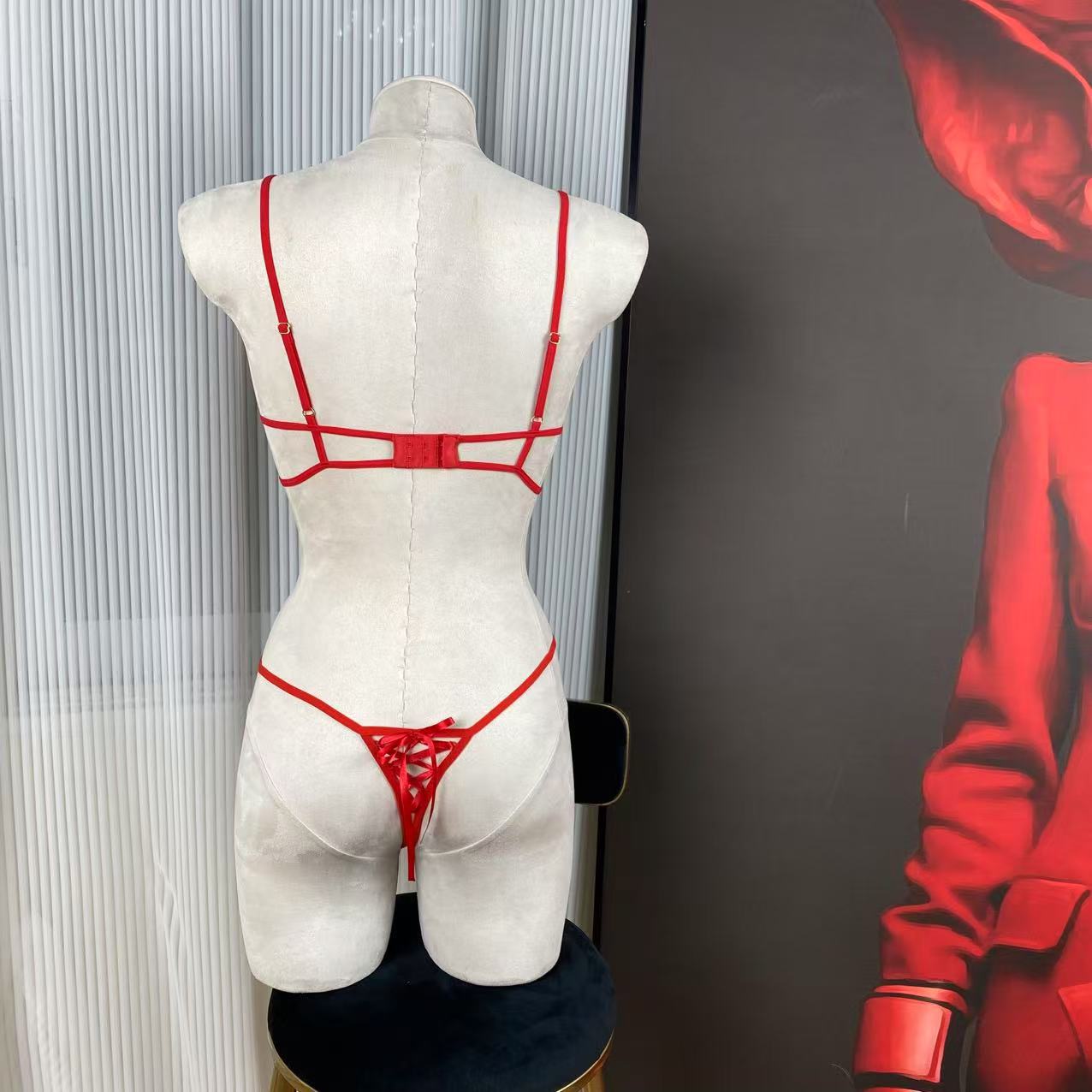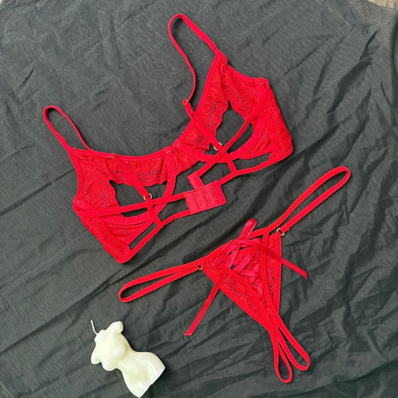 Valentine’s Day Gift Sexy Underwire Open-Chest Heart Lace Crotchless Thong Set Erotic